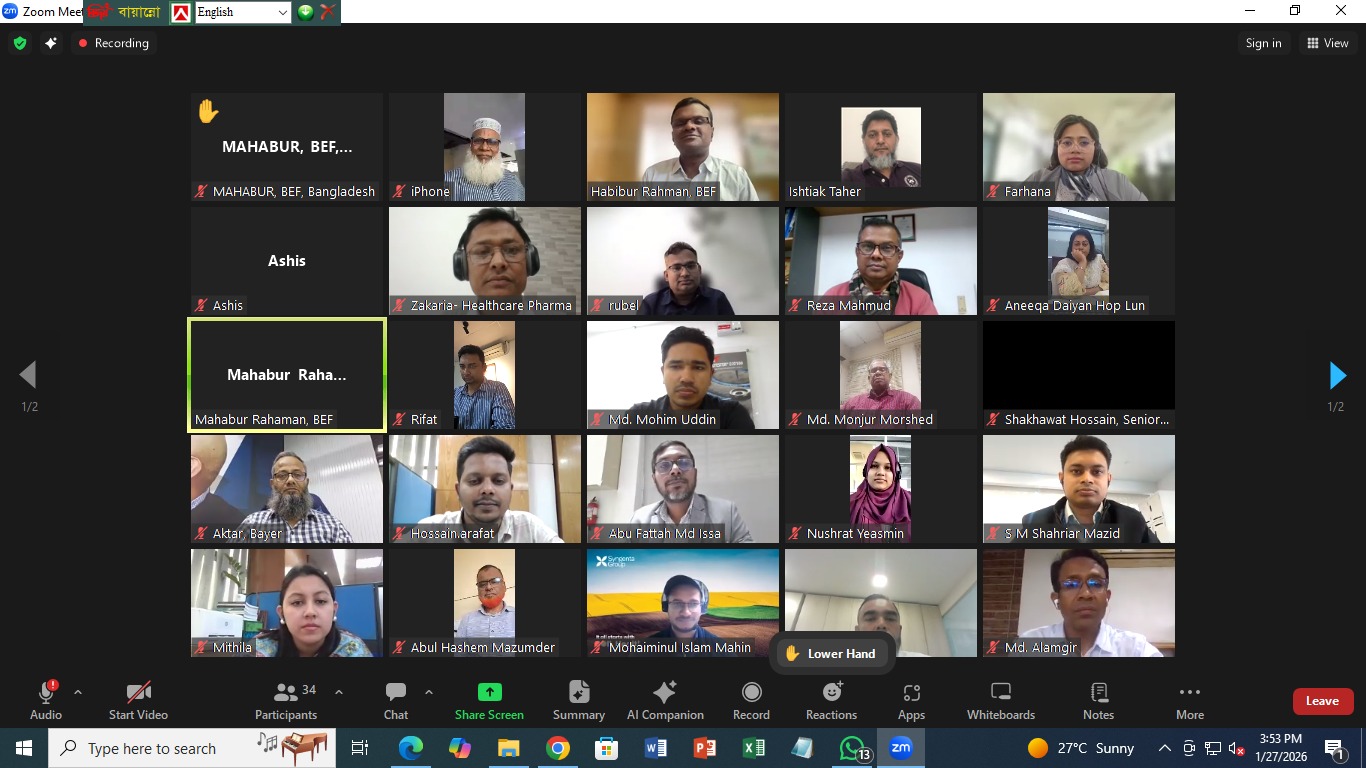Bangladesh Employers’ Federation (BEF), in collaboration with the Labour Administration and Working Condition Cluster (LAWC) of the ILO Country Office for Bangladesh, organized an online Legal Clinic via zoom on 27 January 2026.